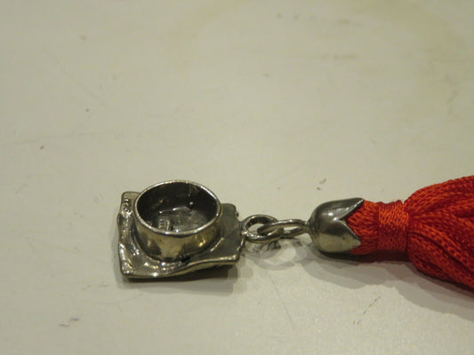 old GRADUATION CAP graduate cap in 800 silver punched red bow