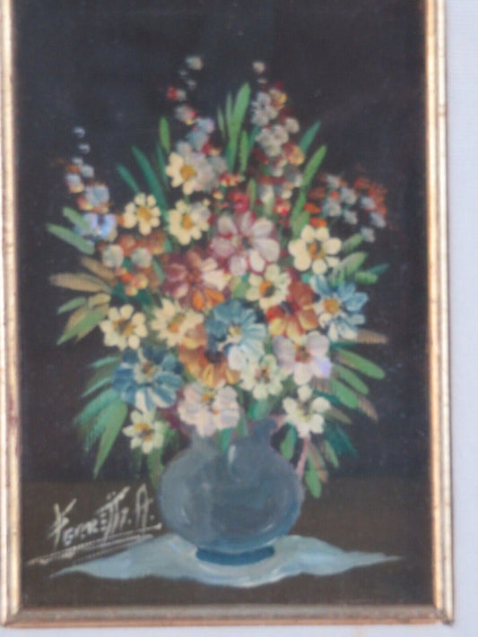 old hand painted painting in frame VASE WITH FLOWERS floral A FERRETTI of 2