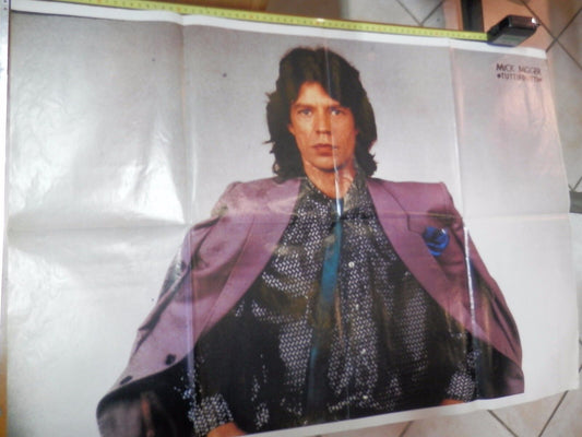 old poster folded poster with photo of DAVID BOWIE MICK JAGGER TUTTI FRUTT