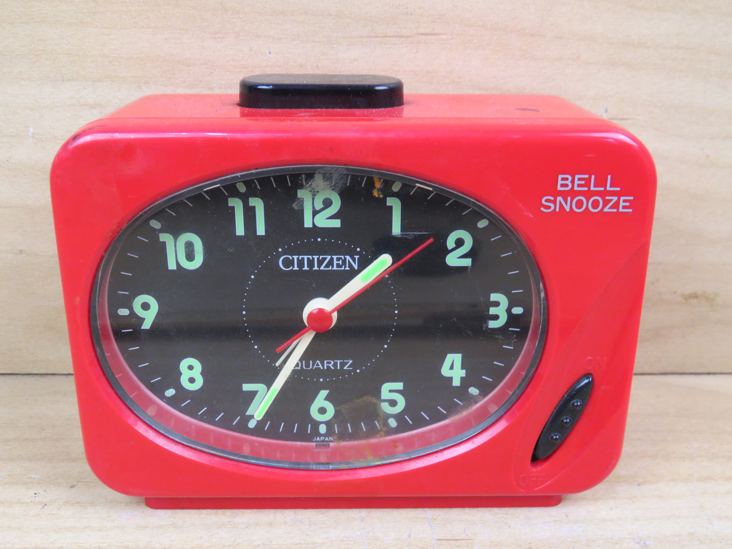 vecchia SVEGLIA CITIZEN OROLOGIO ROSSA JAPAN in plastica vintage da tavolo di