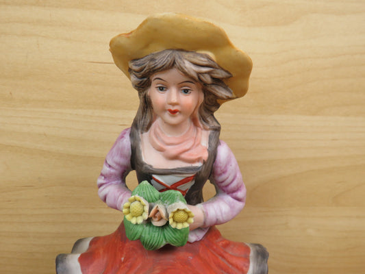 statua STATUINA COWGIRL IN CERAMICA seduta con cappello fiori statuetta vintage