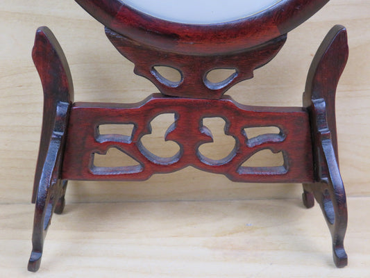 vecchio RICAMO CINESE SU SETA DOUBLE FACE base legno rotante uccelli su ramo di