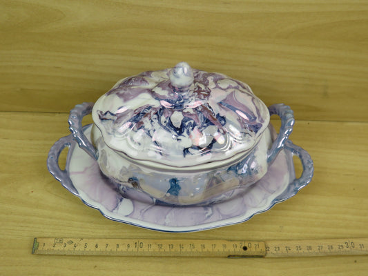 vecchia ZUPPIERA CON COPERCHIO PIATTO DA PORTATA per frutta in ceramica azzurra