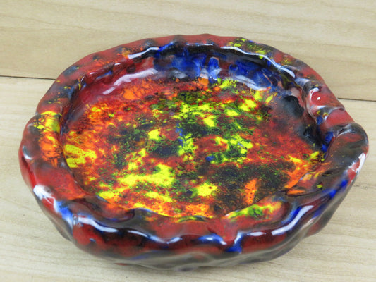 vecchio POSACENERE in pasta ceramica vetrosa multicolore astratto vintage di