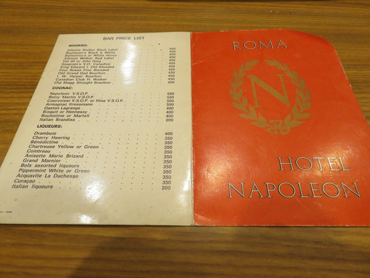 VECCHIO DEPLIANT TURISTICO HOTEL NAPOLEON ROMA LISTINO PREZZI BAR COCKTAILS DI