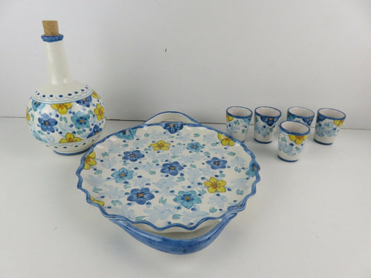 servizio limoncello in ceramica JUVENES vietrese vassoio bottiglia 5 bicchieri
