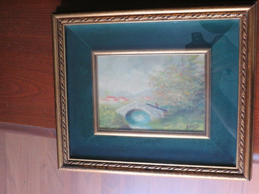 vecchio quadro dipinto a mano da pittore ANTICO PONTE SU FIUME SARU' Garù bosco