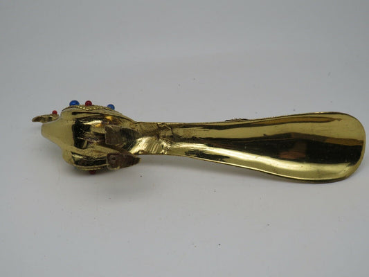 vecchio CALZANTE PER SCARPE CALZASCARPE PAVONE DORATO con decori pietre vintage