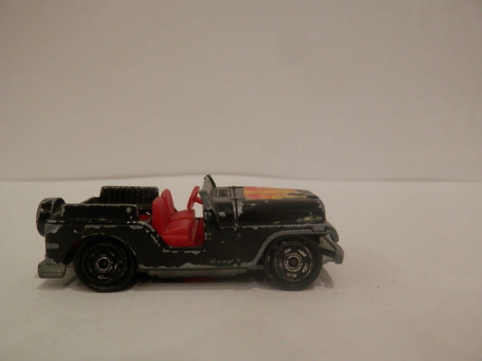 Vecchia automobile giocattolo MAJORETTE JEEP NERA ROSSA N.268 1/54 MADE FRANCE