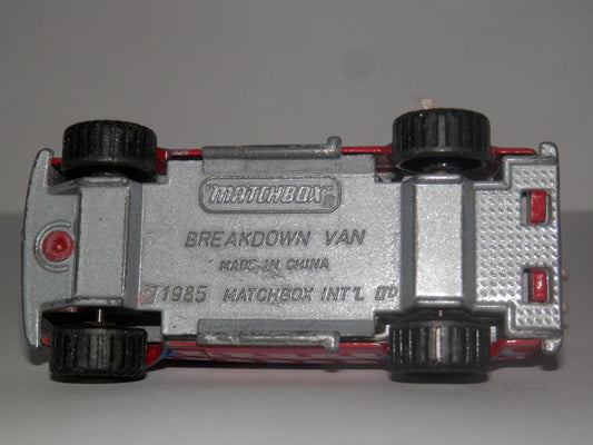 Vecchia automobile giocattolo MATCHBOX BREAKDOWN VAN CARROATTREZZI FURGONE ROSSA