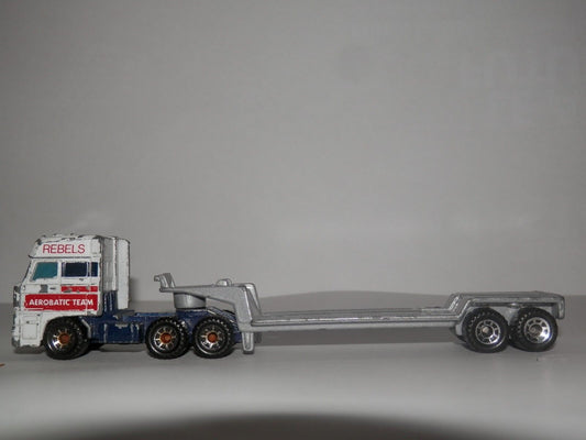 Vecchia automobile giocattolo MATCHBOX DAF 3300 SPACE CAB 1987 LOW BED TRAILER