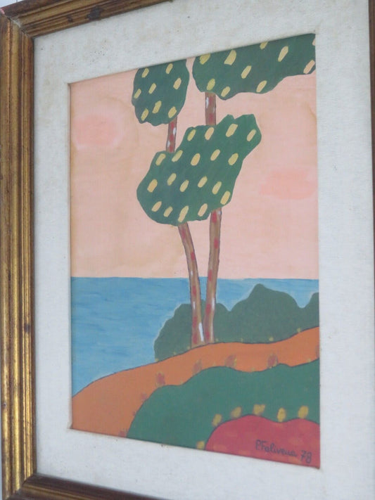 vecchio quadro dipinto a mano ALBERI SUL MARE Pietro Falivena 1978 costa marina