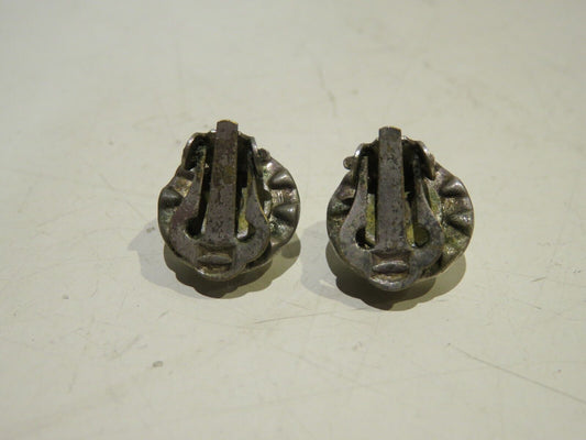 vecchio PAIO DI ORECCHINI in OTTONE BRILLANTINI vintage d'epoca anni 40 50 clip