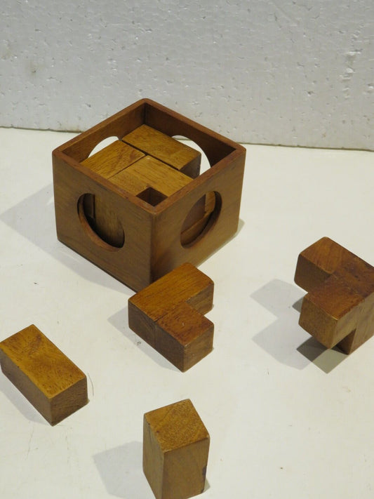 vecchio GIOCO ROMPICAPO cubo in legno parallelepipedi a incastro di pazienza per