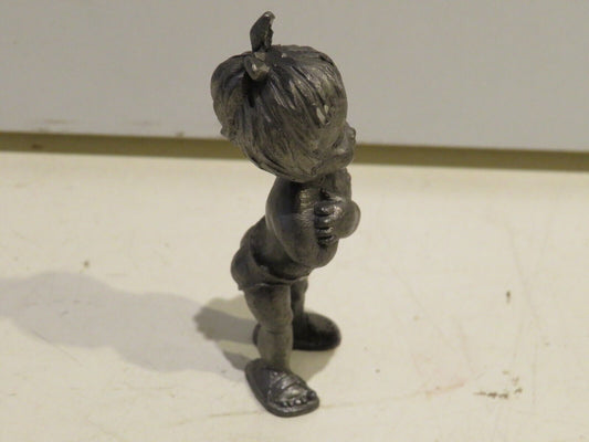 vecchia STATUETTA BAMBINA IN PELTRO con costume da bagno nuotatrice mare vintage