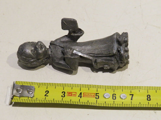 vecchia STATUETTA BAMBINO POSTINO IN PELTRO con tracolla lettera vintage di