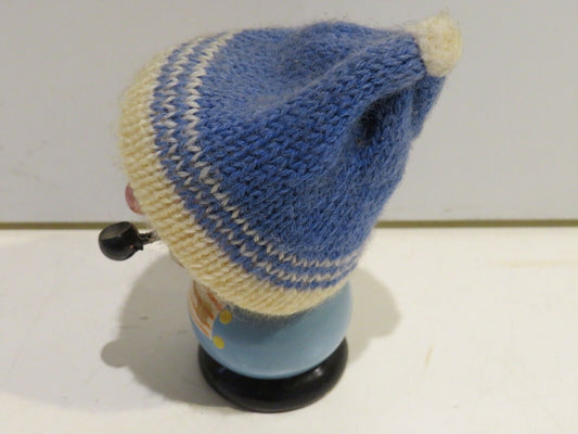 vecchio PORTAUOVO IN LEGNO uomo con pipa e cappello in lana vintage di