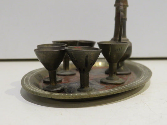 vecchio SET DA THE' IN MINIATURA OTTONE vassoio teiera bicchieri vintage di