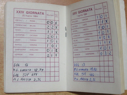 CALENDARIO CALCISTICO SERIE A B 1983 1984 Campionato di calcio sistemi ridotti