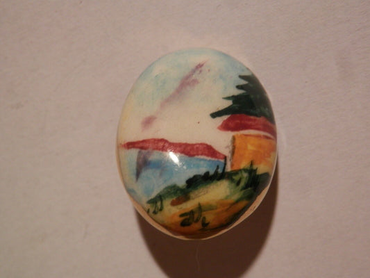 vecchia coppia di ORECCHINI in ceramica e ottone a molla con paesaggio alpino di