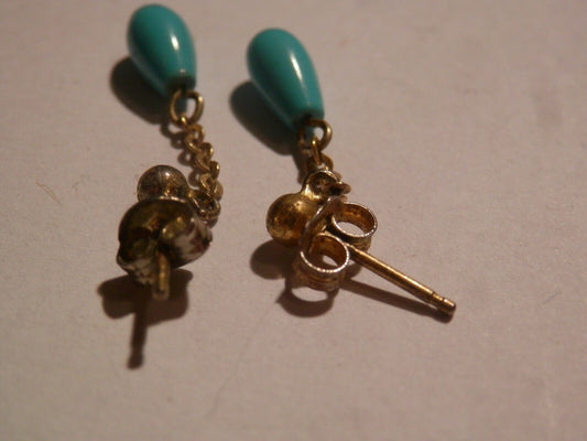vecchia coppia di ORECCHINI in ottone e plastica turchese vintage color oro di