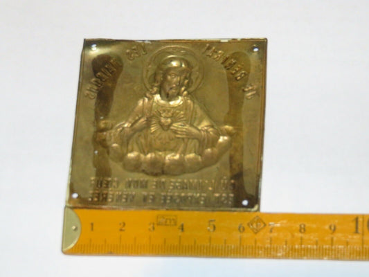 vecchia piastra in ottone stampata JE BENIRAT LES MAISONS OU L IMAGE MON COEUR