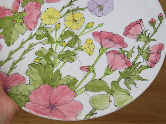 vecchio PIATTO IN CERAMICA ERNESTINE SALERNO decoro floreale dipinto mano rotto