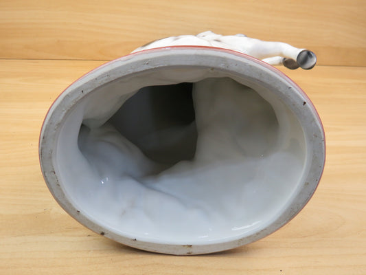 antico CAVALLO RAMPANTE in ceramica porcellana vintage bianco con macchie nere