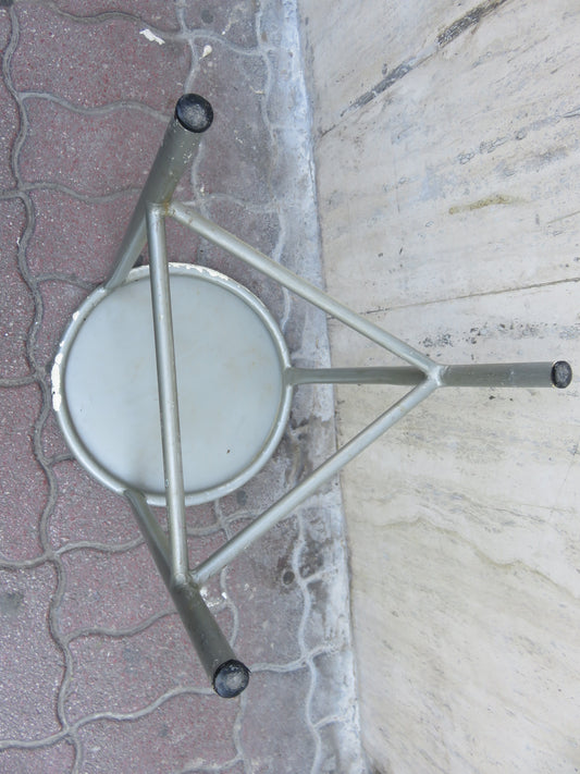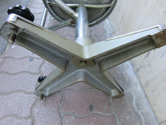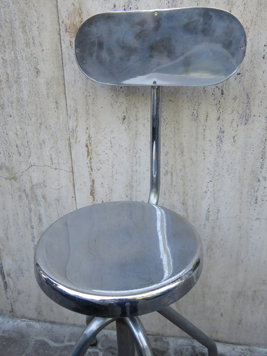 antico SGABELLO INDUSTRIALE da STUDIO MEDICO DOTTORE in acciaio TREPPIEDE ferro