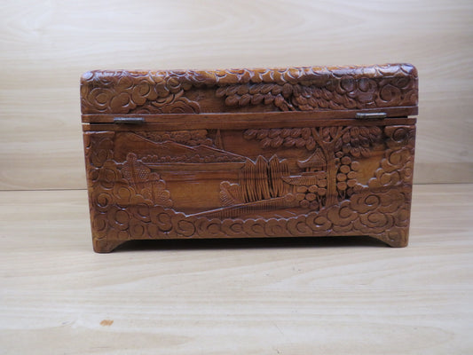 CASSETTIERA ORIENTALE IN LEGNO DI CANFORA INTAGLIATA Anni 50 made in P.R.C.