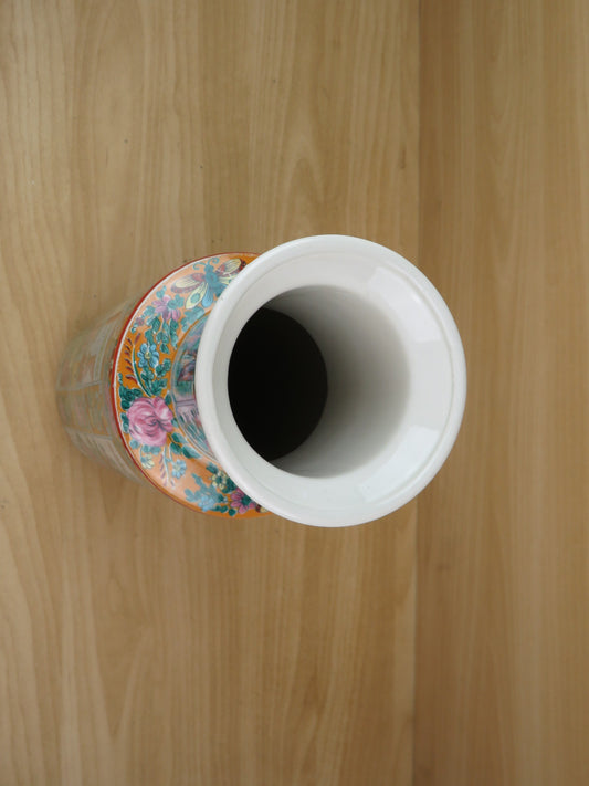 VASO in ceramica CINESE PORCELLANA decorazioni CANTONESE FAMIGLIA ROSE ROLEAU di