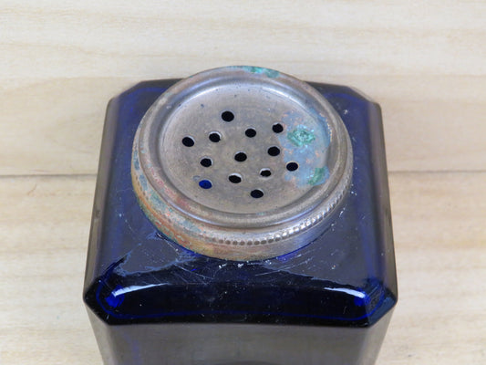 CALAMAIO IN VETRO BLU COBALTO E METALLO antico per spargere talco stilografica