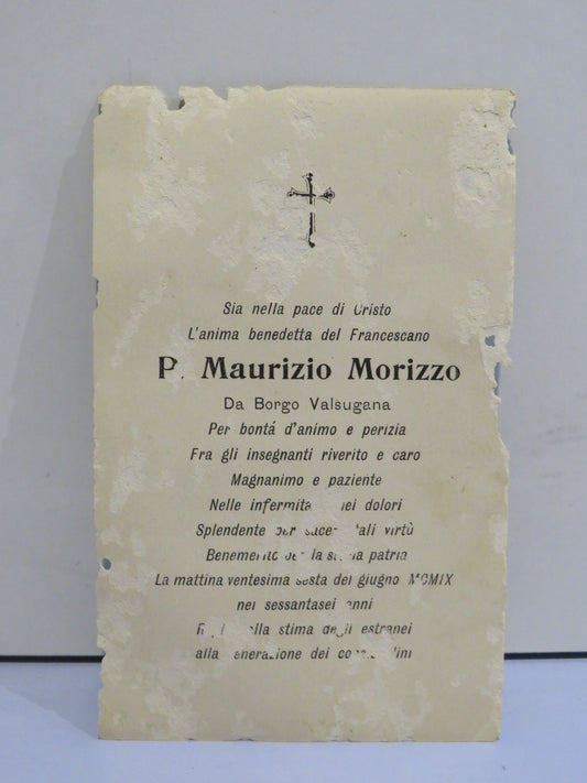 vecchio RICORDINO LUTTINO FRANCESCANO P MAURIZIO MORIZZO BORGO VALSUGANA di