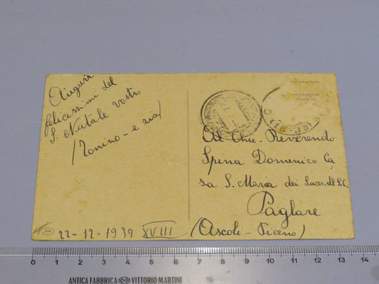 CARTOLINA SECONDA GUERRA MONDIALE PAGLIARE ASCOLI PICENO 1939 CASA SANTA MARIA