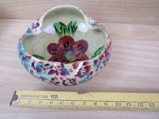 vecchio POSACENERE IN CERAMICA decorato fiori smaltato ciotola vintage di