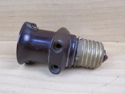 vecchio PORTALAMPADA ATTACCO E27 con doppia presa spina in bachelite corrente di