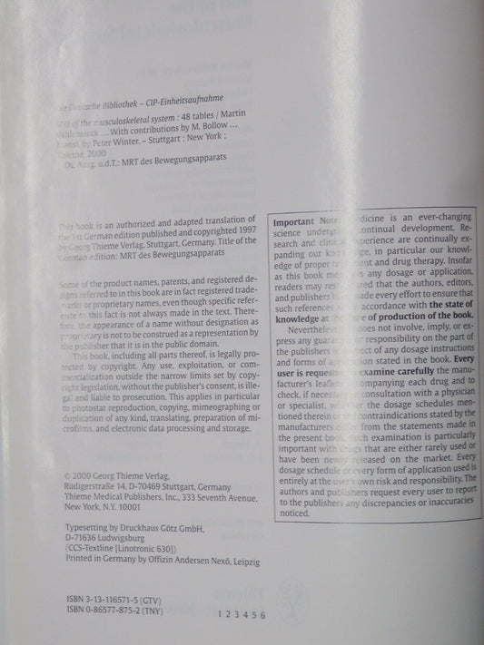 MRI OF THE MUSCULOSKELETAL SYSTEM M Vahlensieck H K Genant M Resier Thieme 2000