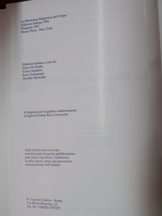 LA RISONANZA MAGNETICA DEL CORPO C B Higgins H Hricak Capozzi 1989 De Paulis