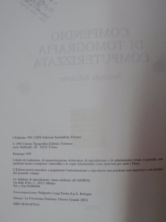 COMPENDIO DI TOMOGRAFIA COMPUTERIZZATA Giancarlo Dal Pozzo UTET 1995 seconda ed.