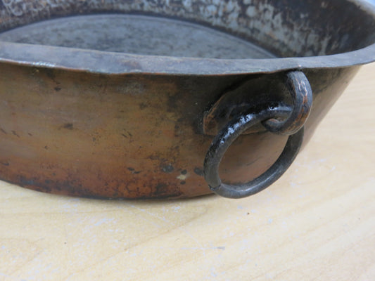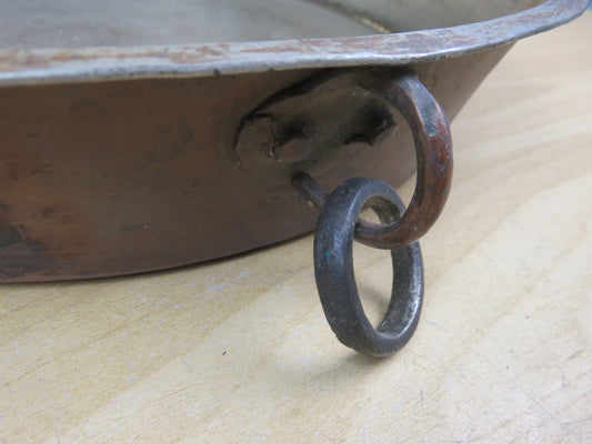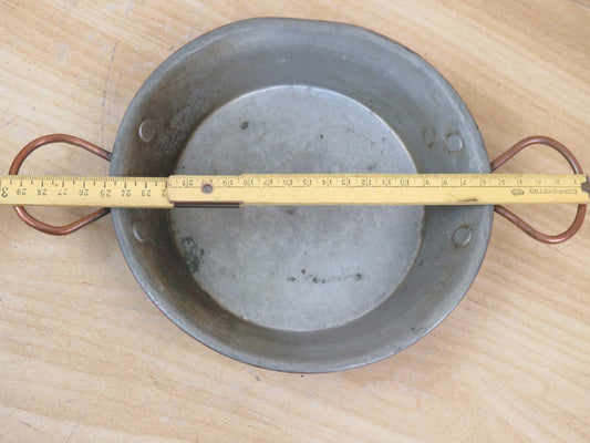 PADELLA CON 2 MANICI di Vecchia PENTOLA in RAME BATTUTO da appendere esposizione