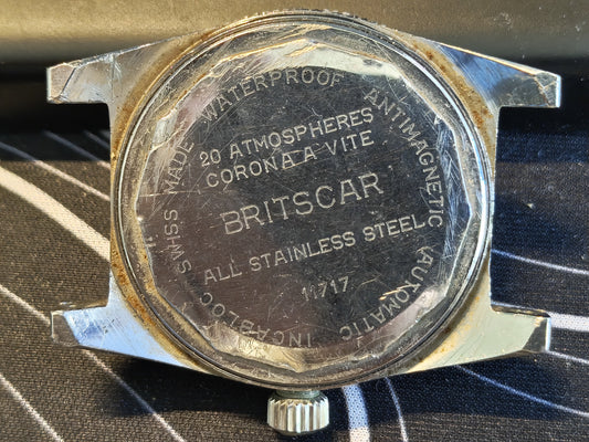 vecchio orologio BRITSCAR 11717 a carica manuale con meccanismo esposto datario