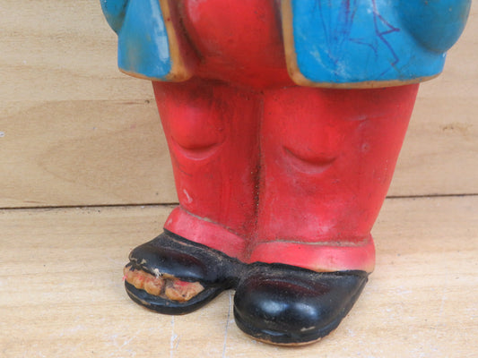 vecchio PUPAZZO CLOWN IN GOMMA SQUITTENTE giocattolo vintage fischietto