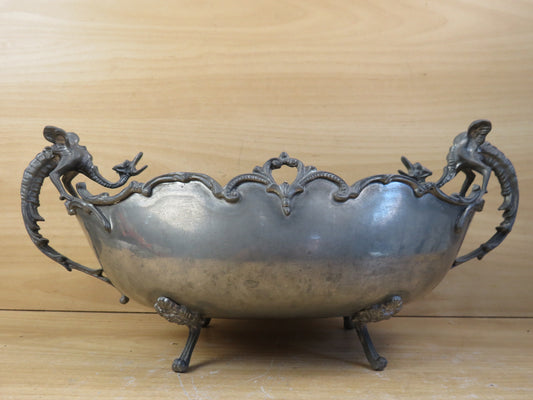 vecchio CENTROTAVOLA IN PELTRO CO-FRA manici draghi svuotatasche porta frutta