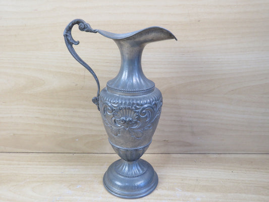 vecchia BROCCA IN PELTRO CO-FRA decorazioni a rilievo anfora vintage caraffa di