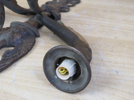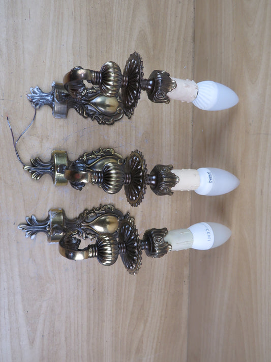 vecchio SET DI 3 APPLIQUES DA PARETE IN BRONZO a forma di candelabro lampade di