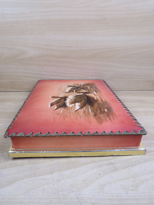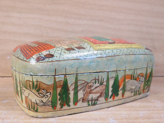 vecchia SCATOLA IN CARTAPESTA stile orientale disegni sovrani lepri vintage di