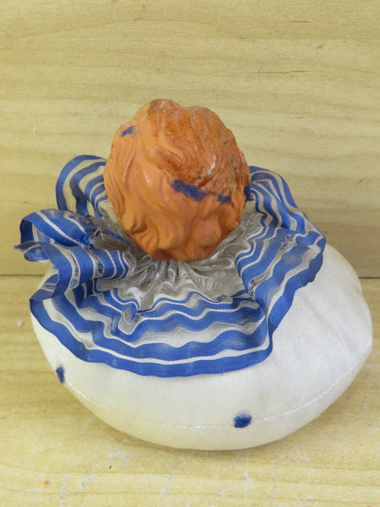 vecchia BAMBOLA SU BASE DI STOFFA rotonda bambolotto testa vintage