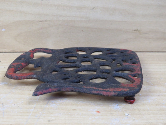 vecchio SOTTOPENTOLA IN GHISA A FORMA DI TEIERA rosso vintage poggia pentola da