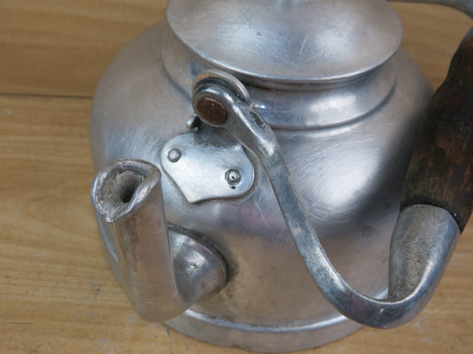 vecchia TEIERA BOLLITORE IN ALLUMINIO TORINO 18 manico in legno antico vintage