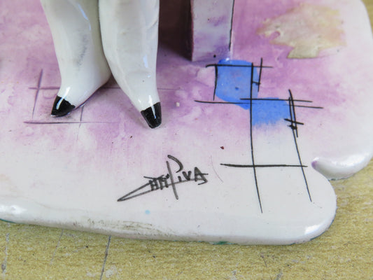 SCULTURA LINO ZAMPIVA PITTORE IN MINIATURA ceramica statuetta vintage spaghetti